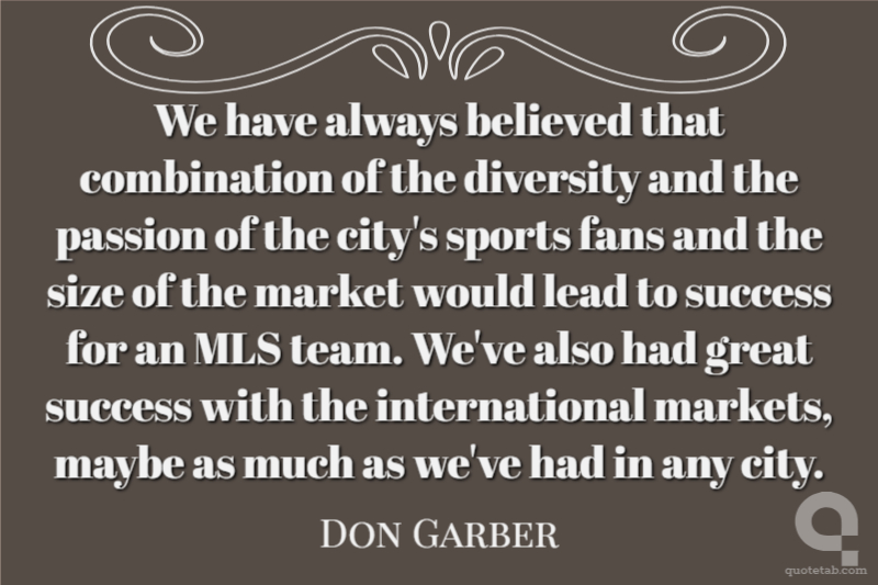 We have always believed that combination of the diversity and the passion of the city's sports fans and the size of the market would lead to success for an MLS team. We've also had great success with the international markets, maybe as much as we've had in any city.