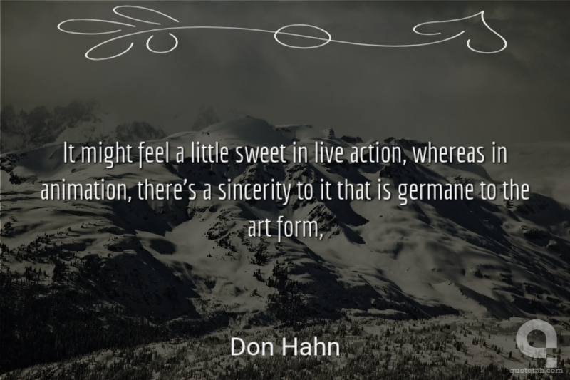 It might feel a little sweet in live action, whereas in animation, there's a sincerity to it that is germane to the art form,