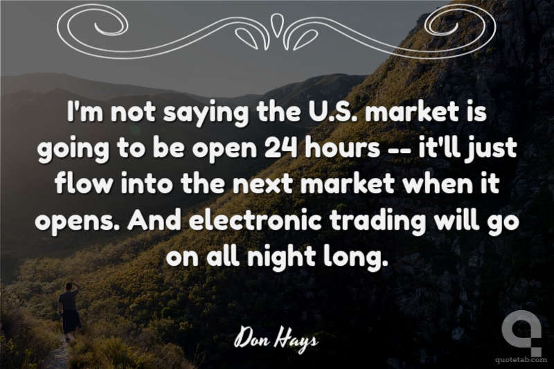 I'm not saying the U.S. market is going to be open 24 hours -- it'll just flow into the next market when it opens. And electronic trading will go on all night long.