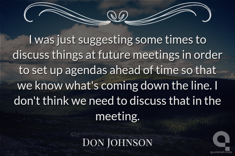 I was just suggesting some times to discuss things at future meetings in order to set up agendas ahead of time so that we know what's coming down the line. I don't think we need to discuss that in the meeting.