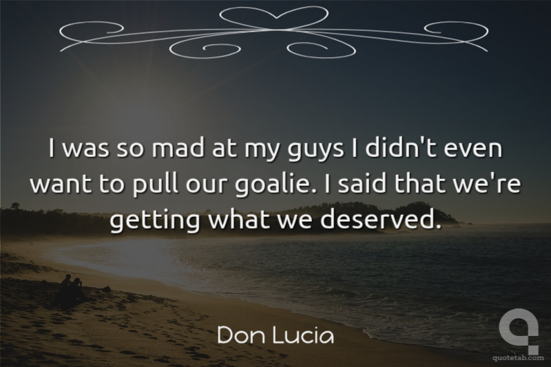I was so mad at my guys I didn't even want to pull our goalie. I said that we're getting what we deserved.