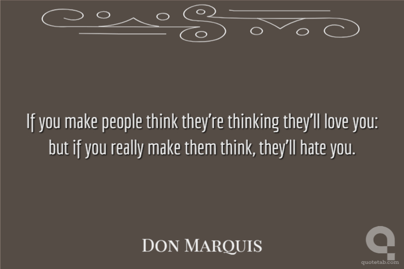 If you make people think they're thinking they'll love you: but if you really make them think, they'll hate you.