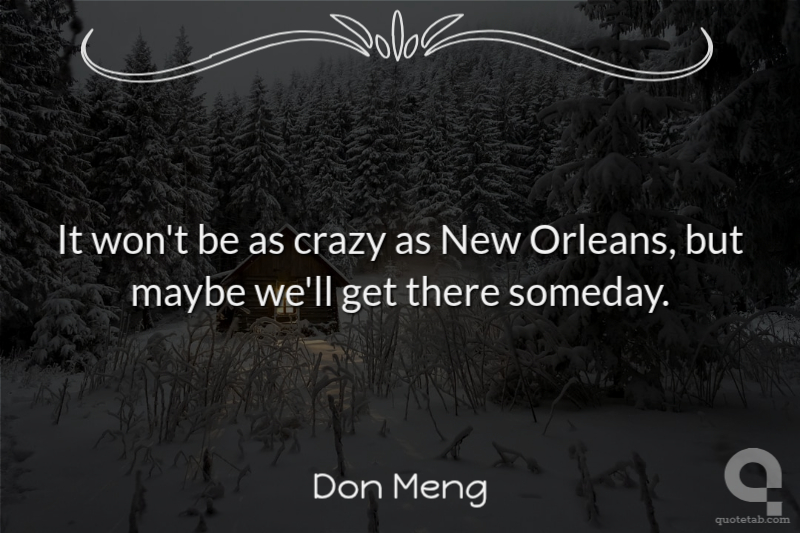 It won't be as crazy as New Orleans, but maybe we'll get there someday.