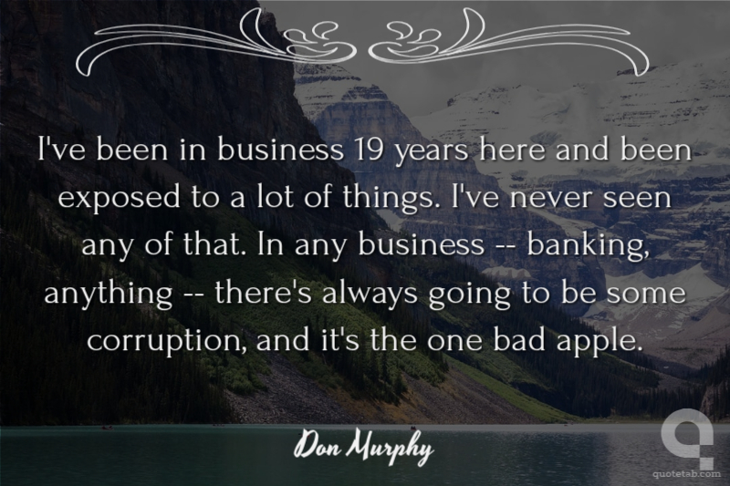 I've been in business 19 years here and been exposed to a lot of things. I've never seen any of that. In any business -- banking, anything -- there's always going to be some corruption, and it's the one bad apple.