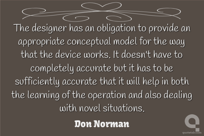 The designer has an obligation to provide an appropriate conceptual model for the way that the device works. It doesn't have to completely accurate but it has to be sufficiently accurate that it will help in both the learning of the operation and also dealing with novel situations.