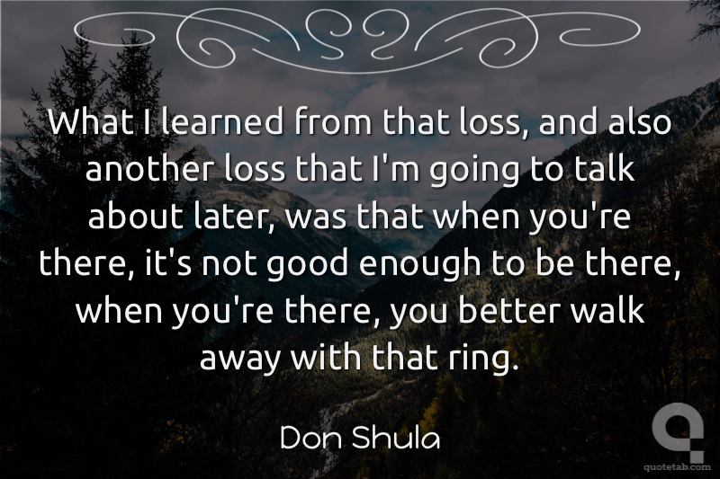 What I learned from that loss, and also another loss that I'm going to talk about later, was that when you're there, it's not good enough to be there, when you're there, you better walk away with that ring.