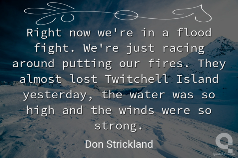 Right now we're in a flood fight. We're just racing around putting our fires. They almost lost Twitchell Island yesterday, the water was so high and the winds were so strong.