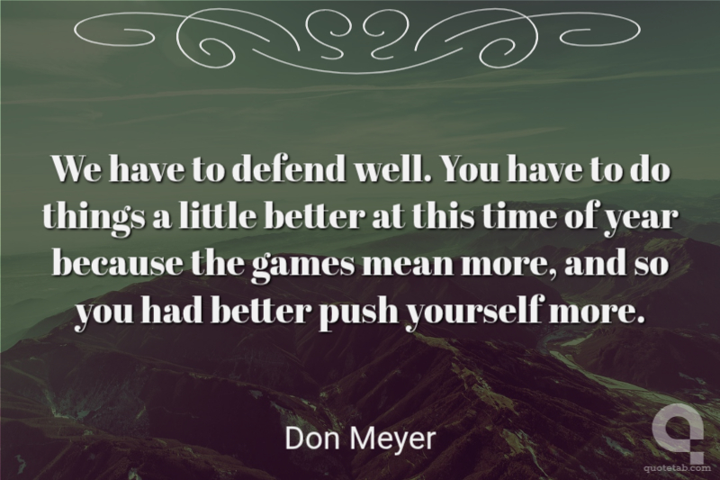 We have to defend well. You have to do things a little better at this time of year because the games mean more, and so you had better push yourself more.