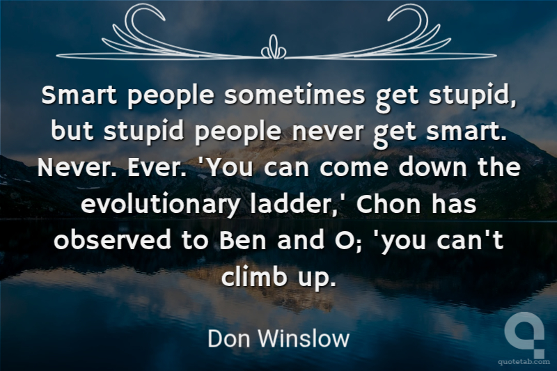 Smart people sometimes get stupid, but stupid people never get smart. Never. Ever. 'You can come down the evolutionary ladder,' Chon has observed to Ben and O; 'you can't climb up.