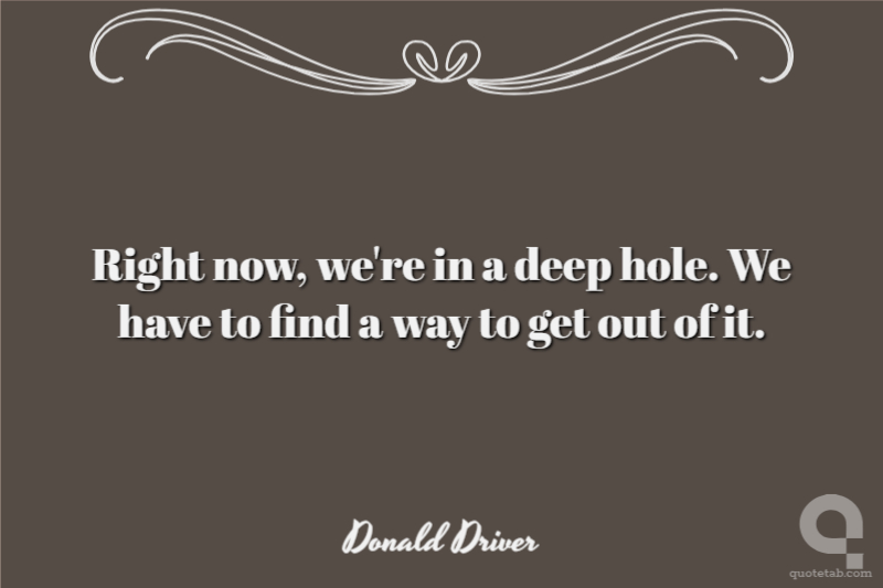 Right now, we're in a deep hole. We have to find a way to get out of it.