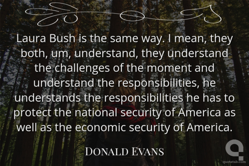 Laura Bush is the same way. I mean, they both, um, understand, they understand the challenges of the moment and understand the responsibilities, he understands the responsibilities he has to protect the national security of America as well as the economic security of America.