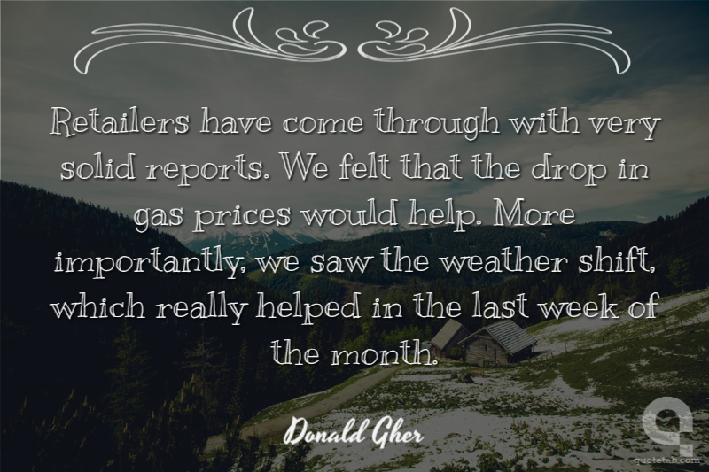 Retailers have come through with very solid reports. We felt that the drop in gas prices would help. More importantly, we saw the weather shift, which really helped in the last week of the month.
