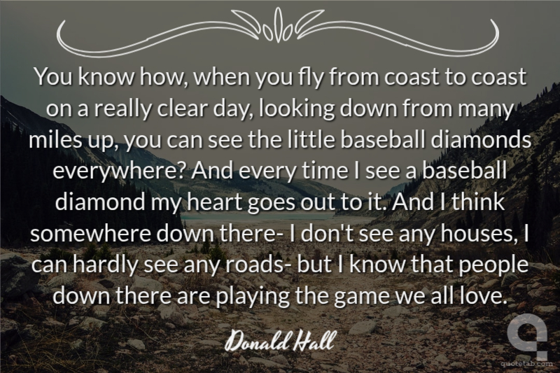 You know how, when you fly from coast to coast on a really clear day, looking down from many miles up, you can see the little baseball diamonds everywhere? And every time I see a baseball diamond my heart goes out to it. And I think somewhere down there- I don't see any houses, I can hardly see any roads- but I know that people down there are playing the game we all love.
