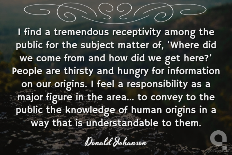 I find a tremendous receptivity among the public for the subject matter of, 'Where did we come from and how did we get here?' People are thirsty and hungry for information on our origins. I feel a responsibility as a major figure in the area... to convey to the public the knowledge of human origins in a way that is understandable to them.