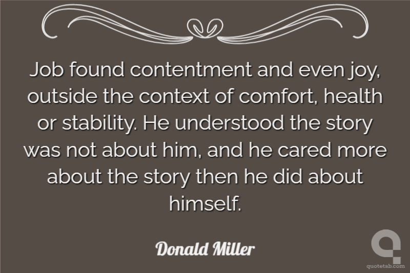 Job found contentment and even joy, outside the context of comfort, health or stability. He understood the story was not about him, and he cared more about the story then he did about himself.