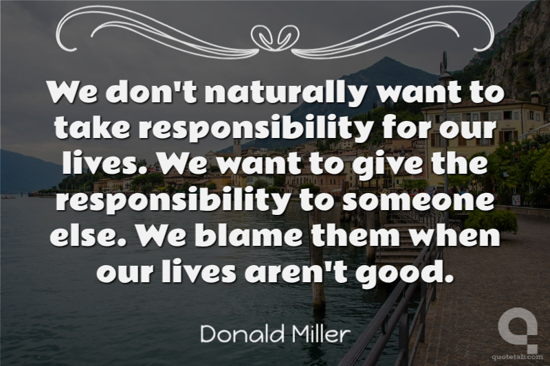 We don't naturally want to take responsibility for our lives. We want to give the responsibility to someone else. We blame them when our lives aren't good.