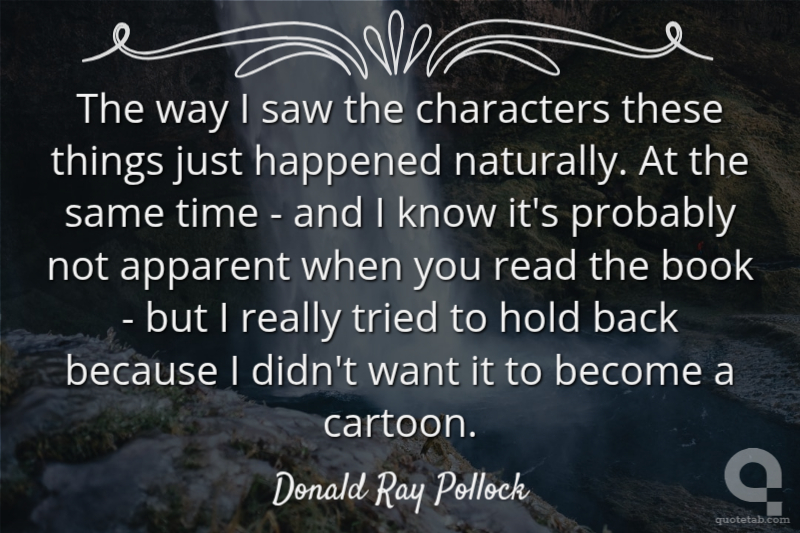 The way I saw the characters these things just happened naturally. At the same time - and I know it's probably not apparent when you read the book - but I really tried to hold back because I didn't want it to become a cartoon.