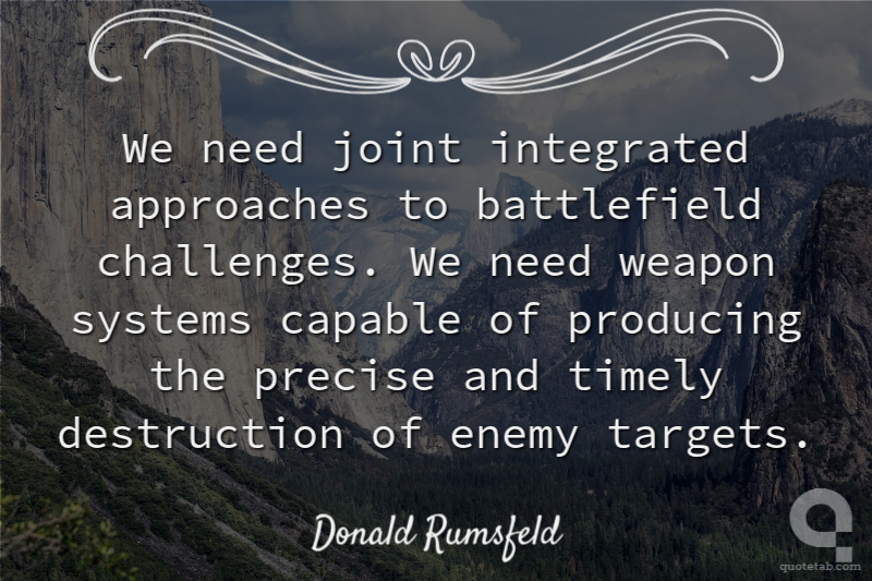 We need joint integrated approaches to battlefield challenges. We need weapon systems capable of producing the precise and timely destruction of enemy targets.