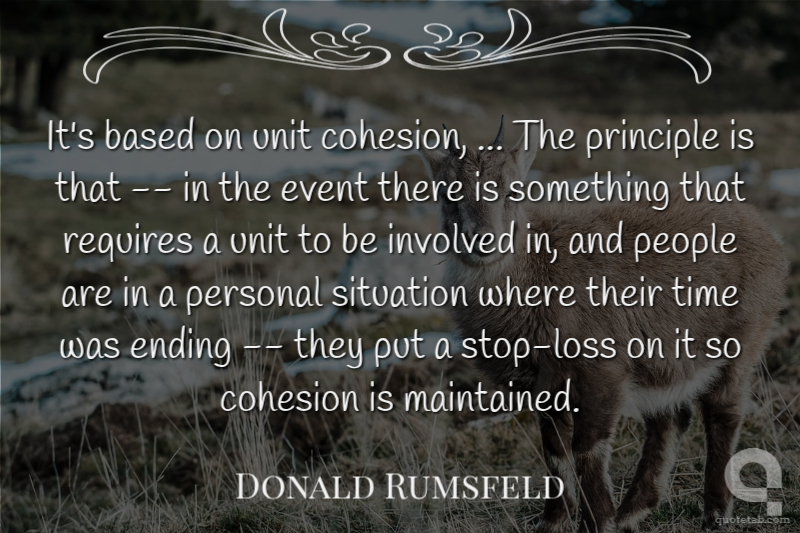 It's based on unit cohesion, ... The principle is that -- in the event there is something that requires a unit to be involved in, and people are in a personal situation where their time was ending -- they put a stop-loss on it so cohesion is maintained.