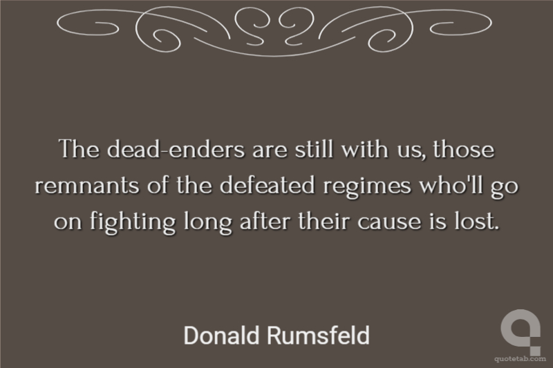 The dead-enders are still with us, those remnants of the defeated regimes who'll go on fighting long after their cause is lost.