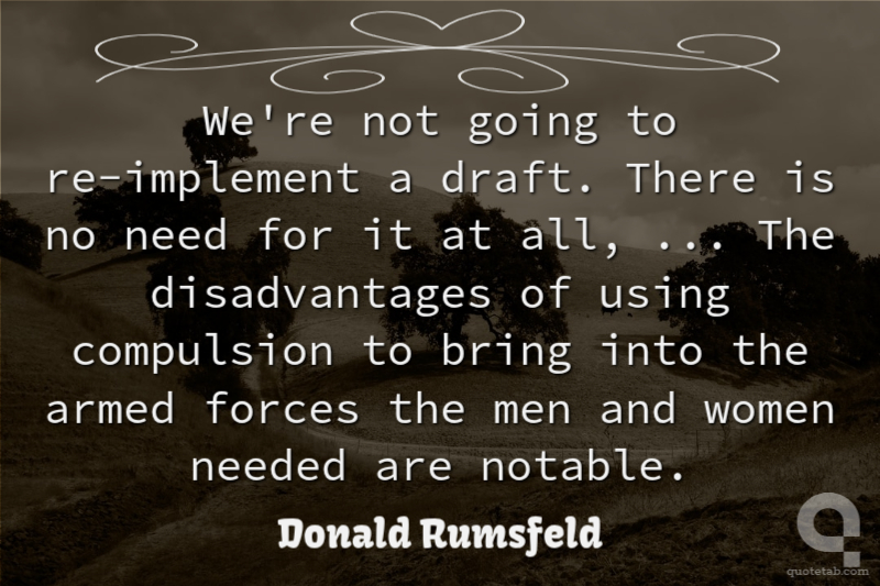 We're not going to re-implement a draft. There is no need for it at all, ... The disadvantages of using compulsion to bring into the armed forces the men and women needed are notable.