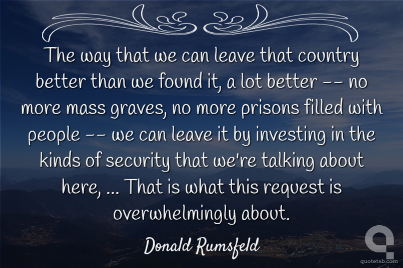 The way that we can leave that country better than we found it, a lot better -- no more mass graves, no more prisons filled with people -- we can leave it by investing in the kinds of security that we're talking about here, ... That is what this request is overwhelmingly about.