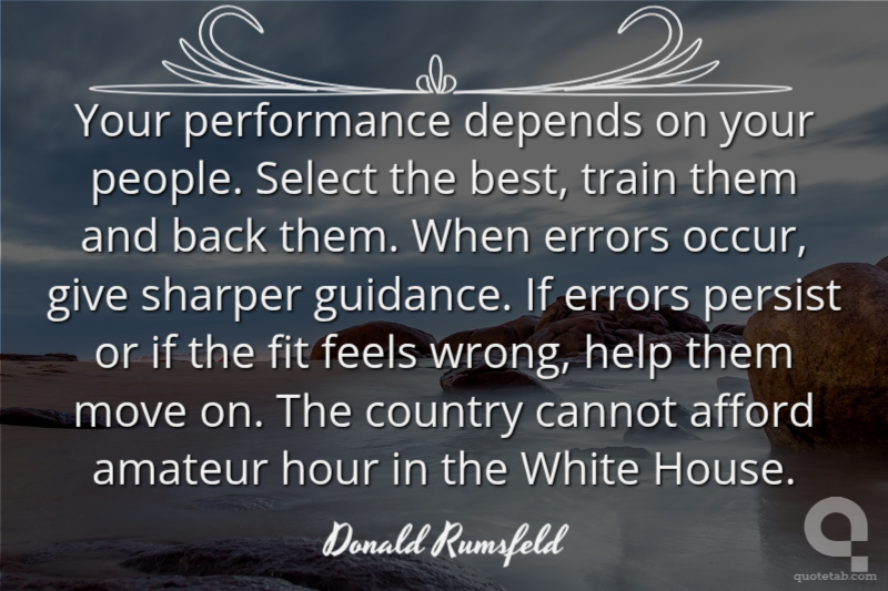 Your performance depends on your people. Select the best, train them and back them. When errors occur, give sharper guidance. If errors persist or if the fit feels wrong, help them move on. The country cannot afford amateur hour in the White House.