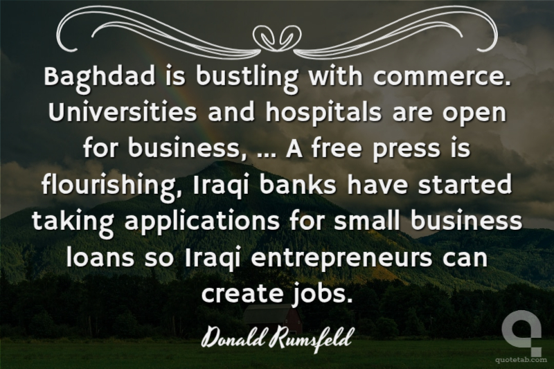 Baghdad is bustling with commerce. Universities and hospitals are open for business, ... A free press is flourishing, Iraqi banks have started taking applications for small business loans so Iraqi entrepreneurs can create jobs.