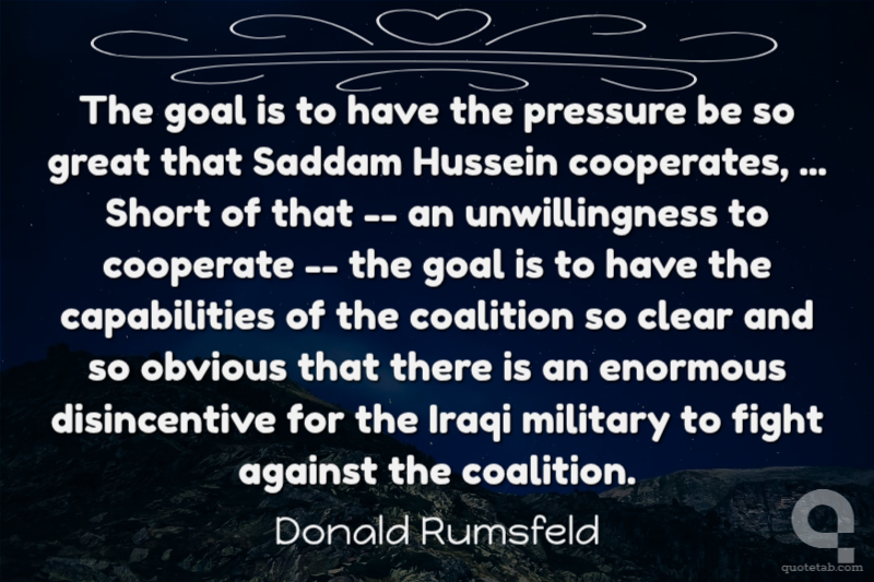 The goal is to have the pressure be so great that Saddam Hussein cooperates, ... Short of that -- an unwillingness to cooperate -- the goal is to have the capabilities of the coalition so clear and so obvious that there is an enormous disincentive for the Iraqi military to fight against the coalition.