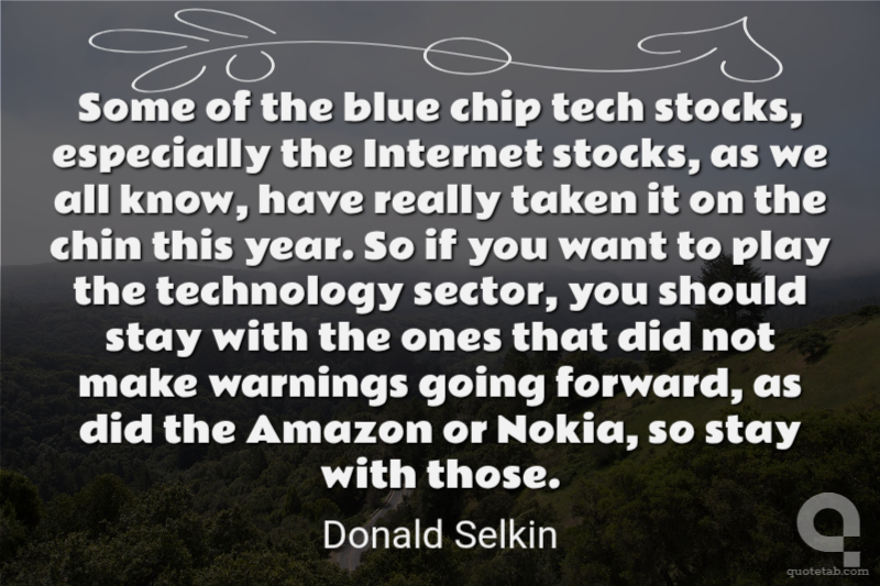 Some of the blue chip tech stocks, especially the Internet stocks, as we all know, have really taken it on the chin this year. So if you want to play the technology sector, you should stay with the ones that did not make warnings going forward, as did the Amazon or Nokia, so stay with those.