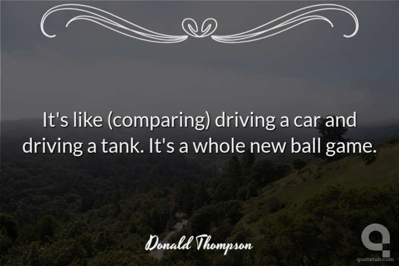 It's like (comparing) driving a car and driving a tank. It's a whole new ball game.