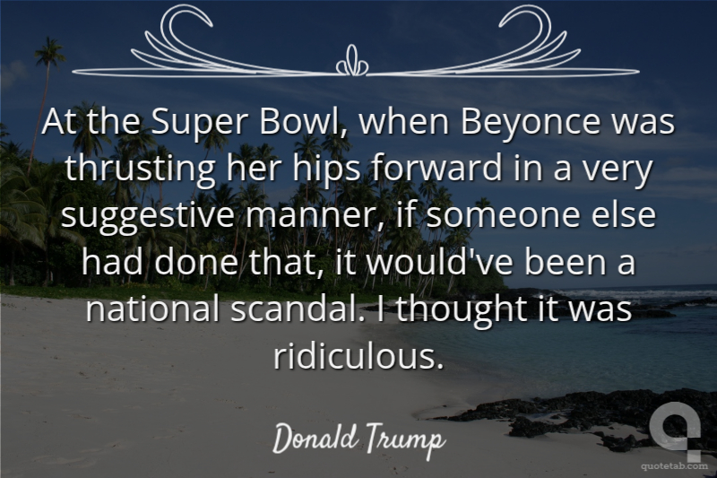 At the Super Bowl, when Beyonce was thrusting her hips forward in a very suggestive manner, if someone else had done that, it would've been a national scandal. I thought it was ridiculous.