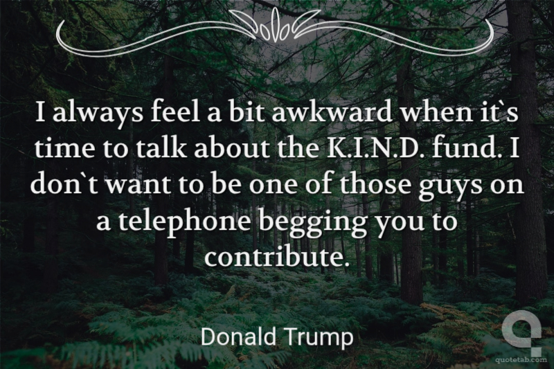 I always feel a bit awkward when it`s time to talk about the K.I.N.D. fund. I don`t want to be one of those guys on a telephone begging you to contribute.