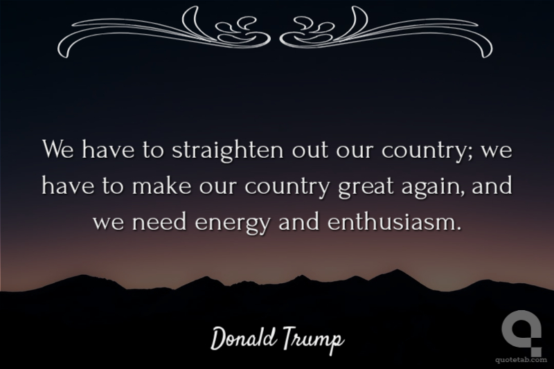 We have to straighten out our country; we have to make our country great again, and we need energy and enthusiasm.
