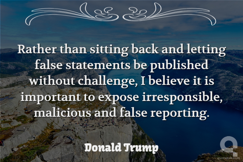 Rather than sitting back and letting false statements be published without challenge, I believe it is important to expose irresponsible, malicious and false reporting.
