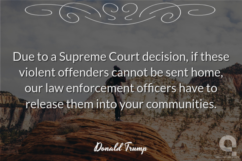 Due to a Supreme Court decision, if these violent offenders cannot be sent home, our law enforcement officers have to release them into your communities.