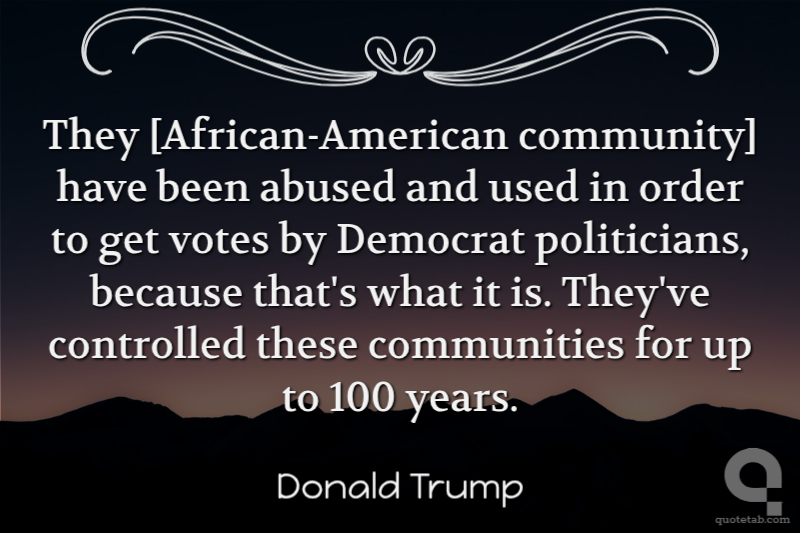 They [African-American community] have been abused and used in order to get votes by Democrat politicians, because that's what it is. They've controlled these communities for up to 100 years.