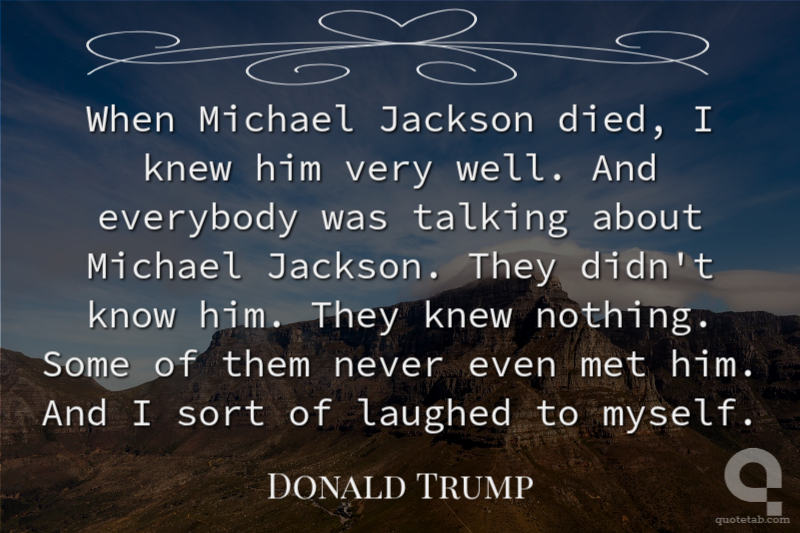 When Michael Jackson died, I knew him very well. And everybody was talking about Michael Jackson. They didn't know him. They knew nothing. Some of them never even met him. And I sort of laughed to myself.