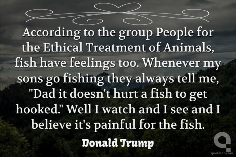 According to the group People for the Ethical Treatment of Animals, fish have feelings too. Whenever my sons go fishing they always tell me, "Dad it doesn't hurt a fish to get hooked." Well I watch and I see and I believe it's painful for the fish.