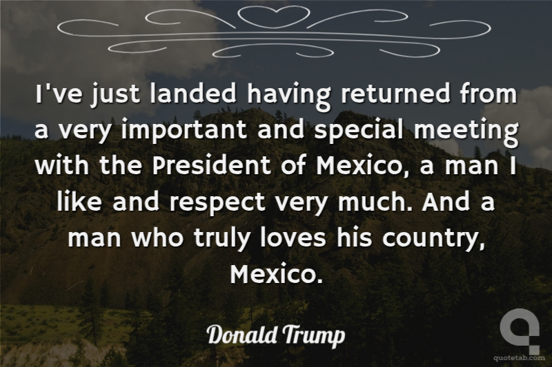 I've just landed having returned from a very important and special meeting with the President of Mexico, a man I like and respect very much. And a man who truly loves his country, Mexico.