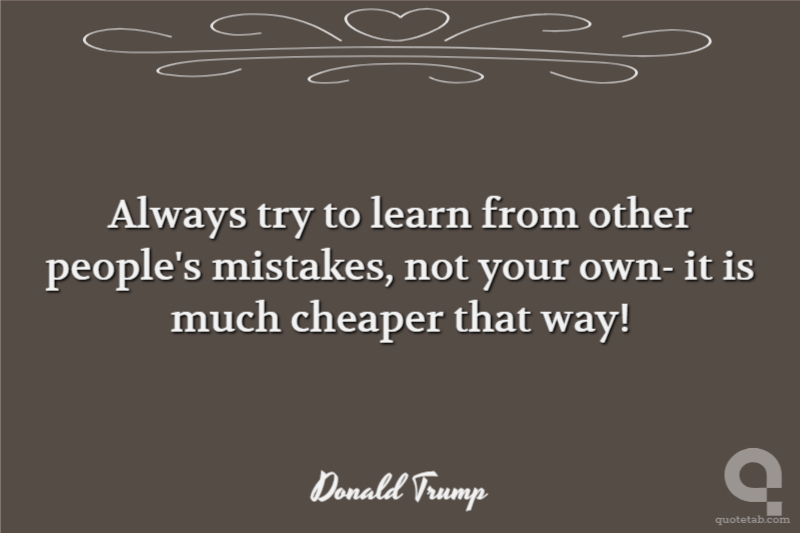 Always try to learn from other people's mistakes, not your own- it is much cheaper that way!