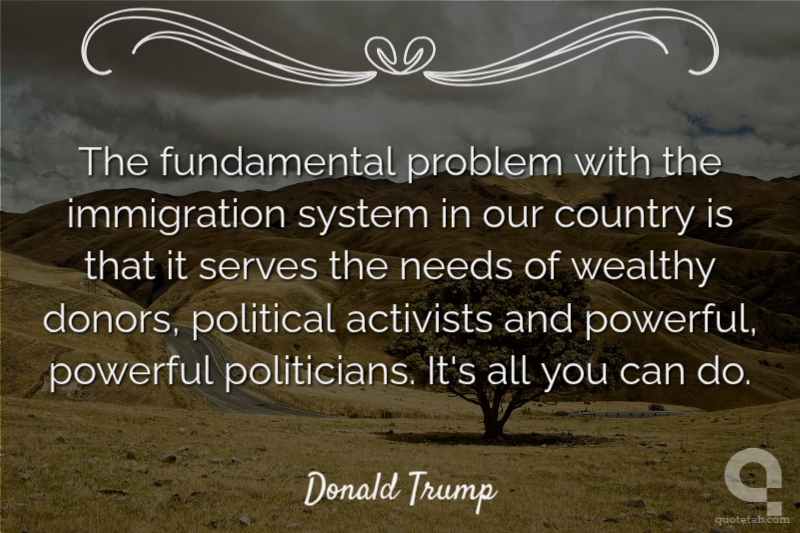 The fundamental problem with the immigration system in our country is that it serves the needs of wealthy donors, political activists and powerful, powerful politicians. It's all you can do.