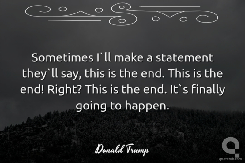 Sometimes I`ll make a statement they`ll say, this is the end. This is the end! Right? This is the end. It`s finally going to happen.
