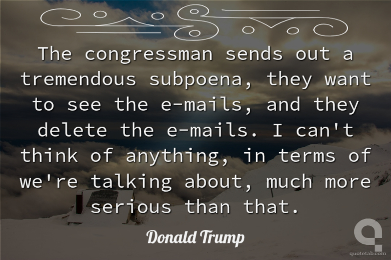 The congressman sends out a tremendous subpoena, they want to see the e-mails, and they delete the e-mails. I can't think of anything, in terms of we're talking about, much more serious than that.