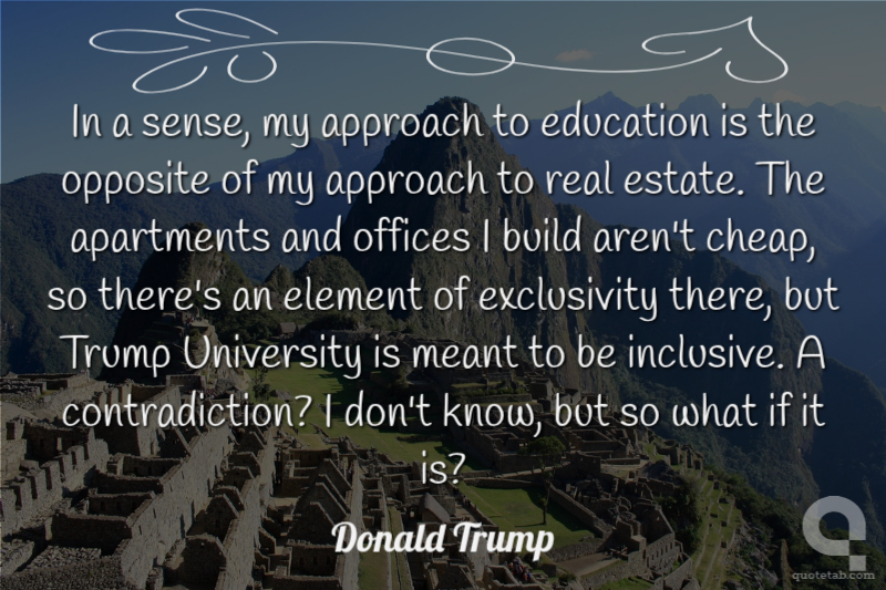 In a sense, my approach to education is the opposite of my approach to real estate. The apartments and offices I build aren't cheap, so there's an element of exclusivity there, but Trump University is meant to be inclusive. A contradiction? I don't know, but so what if it is?
