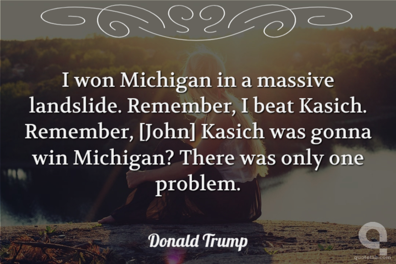 I won Michigan in a massive landslide. Remember, I beat Kasich. Remember, [John] Kasich was gonna win Michigan? There was only one problem.