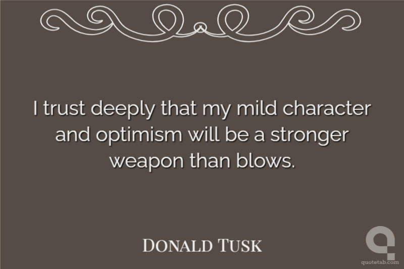 I trust deeply that my mild character and optimism will be a stronger weapon than blows.