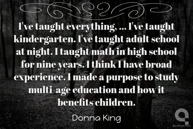 I've taught everything, ... I've taught kindergarten. I've taught adult school at night. I taught math in high school for nine years. I think I have broad experience. I made a purpose to study multi-age education and how it benefits children.