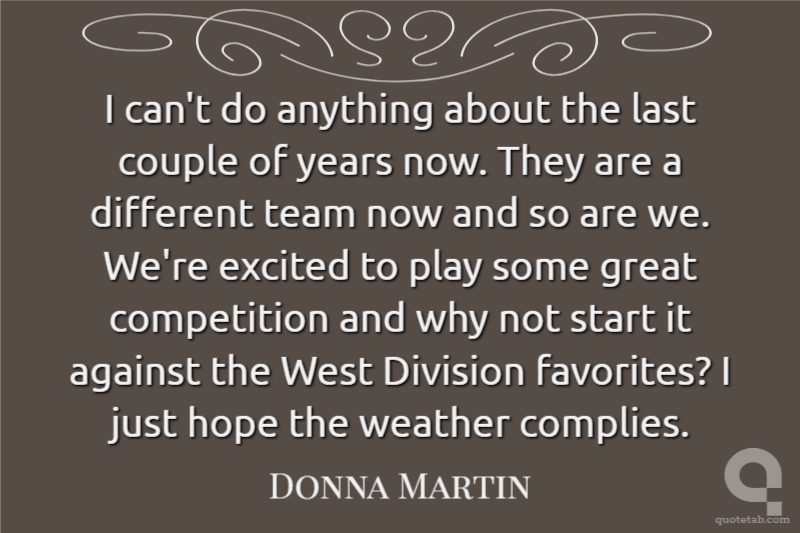 I can't do anything about the last couple of years now. They are a different team now and so are we. We're excited to play some great competition and why not start it against the West Division favorites? I just hope the weather complies.