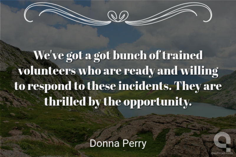 We've got a got bunch of trained volunteers who are ready and willing to respond to these incidents. They are thrilled by the opportunity.
